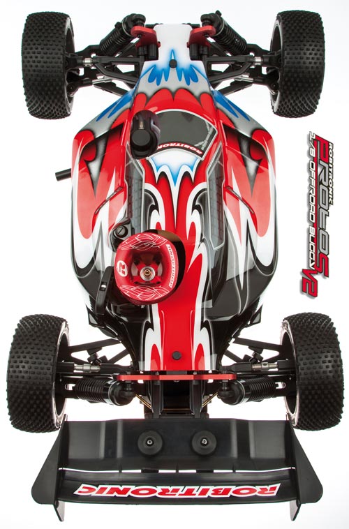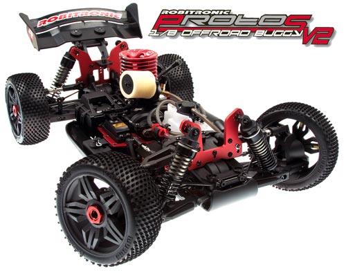 | | Robitronic präsentiert seinen neuen Protos v2 Nitro Buggy ARTR, vormontiert und mit vielen Tuningteilen bestückt im Maßstab 1/8. Ein grundsolides 4,6ccm Aggregat sorgt für mehr als ausreichend Power. Da Servos in diesen Fahrzeugen stark beansprucht werden, kommt der Protos v2 von Haus aus mit hochwertigen Savöx Servos, die sich schon im internationalen Wettbewerb seit geraumer Zeit beweisen in den Handel.