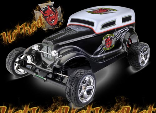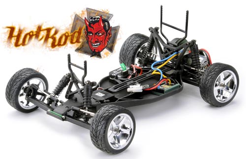 Der Antrieb erfolgt direkt vom Motor auf die Hinterachse. Damit verfügt der 2 WD angetrieben HotRod über genügend Power. Der „HotRod“ wird als RTR, KIT und RTR Brushless Version zu haben sein.