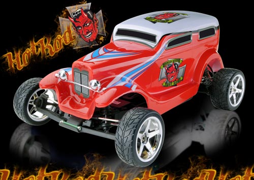 | | Mit seinen brandneuen HotRod Modellen im Maßstab 1/10 präsentiert Ansmann Racing die Verkleinerung eines Typisch US-amerikanischen Wagens dieser Klasse. Sein Flammen Design und seine detaillierte Karosserie machen diesen Streetracer zum hingucker auf jeder Rennstrecke.