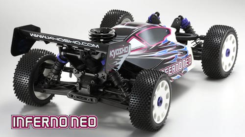 | | Nach sieben Weltmeistertiteln durch Fahrzeuge aus der Inferno- Reihe wird nun mit dem Inferno NEO die nächste Evolutionsstufe nach der 7.5-Sports-Ära eingeleitet. Der RTR- Buggy im Maßstab 1:8 ist nicht nur robuster als sein Vorgänger, sondern wurde auch in seiner Anpassungsfähigkeit an unterschiedlichste Geländebedingungen weiter optimiert. In dem komplett mit Kugellagern ausgestatteten Modell kommen Big-Bore-Stoßdämpfer sowie die gleichen griffigen Räder wie beim Wettbewerbsmodell Inferno MP9 zum Einsatz. Composite- Achsstreben an der Vorder- und Hinterachse erzielen einen ausgewogenen Kompromiss zwischen Elastizität und Steifigkeit. Dies sorgt für Stabilität bei gleichzeitig exzellenten Fahrleistungen.