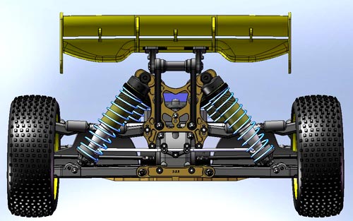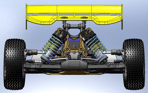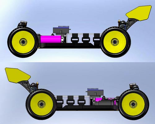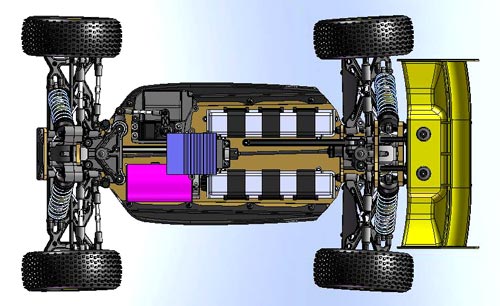 Darüber hinaus zeigt Ansmann Racing nun erste CAT Zeichnungen von einer Brushless Version des X8, den X8e. Dabei handelt es sich um ein völlig eigenständiges Fahrzeug das nicht wie so oft ein umgebauter Verbrenner ist. Der X8e verfügt über ein neuentwickeltes Chassis basierend auf der Aufhängung des X8 GP. Zusätzlich kommt das neue iDiff (patend pending) zum Einsatz, welches sich derzeit ebenfalls im Test befindet.