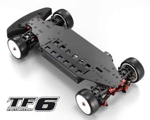 | | Im Warenlager von Kyosho Deutschland ist das lang erwartete 1:10 Glattbahn- Chassis TF6 frisch eingetroffen und wird innerhalb der nächsten Tage im Fachhandel erhältlich sein. Nach der Entwicklung durch die genialen Konstrukteure Shin Adachi und Kazuhiro Miyazaki, wurde das Elektromodell im harten Wettbewerbseinsatz durch Kyosho-Teamfahrer Christopher Krapp sehr ausgiebig und erfolgreich getestet. Als Antriebssystem kommen zwei getrennte Riemen zum Einsatz.