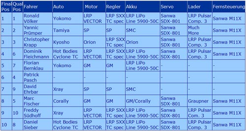 Dieser Sieg war sein vierter wichtiger Tourenwagen-Titel im Jahr 2010 (DHI Cup, Indoor-Europameisterschaft, LRP-TCM und Indoor-DM) – und alle gewann er in weniger als 4 Monaten.