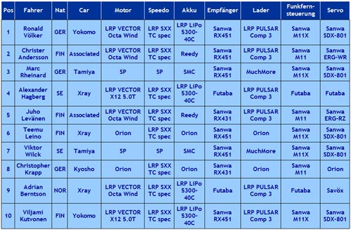 Am Ende war es Ronald Völker, der alle hinter sich lies und TQ wurde. 4 Siege in 6 Läufen waren eine mehr als eindrucksvolle Bilanz, vor Christer Andersson und Alexander Hagberg.