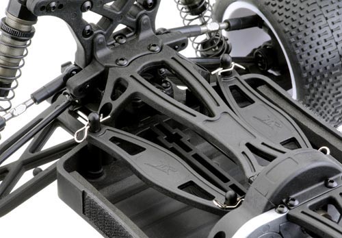 Das Fahrwerk verfügt über Gewinde Öldruckstoßdämpfer und vier unabhängige Radaufhängungen mit Dreieckslenkern aus stabilem ABS-Kunststoff. Die Hauptmasseträger wie Motor und Akku sind mittig platziert, um ein agiles und tückenloses Handling zu erreichen. Davon profitiert auch das Sprungverhalten, da weder Nase noch Heck in einem zu tiefen Winkel eintauchen und so eine stabile Flugbahn erreicht wird. Das Getriebe ist abgedichtet und somit vor Staub und Steinen geschützt. Für Wettbewerbsfahrer bietet dieses Modell eine Vielzahl von Einstellmöglichkeiten, so lässt sich das Set-Up auf jede Strecke abstimmen.