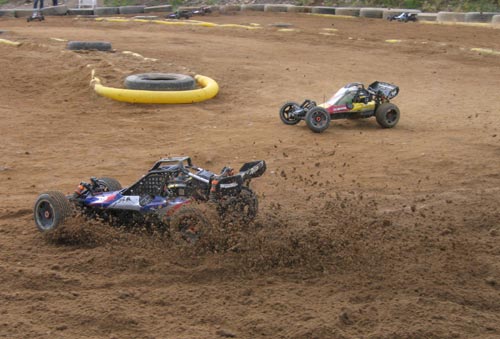 Die ersten Runden führte Tim das Feld an. Nach einem Sprung musste er seinen Baja aus technischen Gründen abstellen - die Feder der Kupplung war gerissen. Jetzt ging das „Hauen“ und „Stechen“ um den zweiten Tagesplatz erst richtig los. Beide Kontrahenten fuhren hart, lieferten sich aber einen fairen Wettkampf. So musste ein kleiner Fahrfehler die Entscheidung bringen...