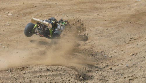 Nach einem Sprunghügel blieb der Baja von Michael auf dem Kopf liegen blieb. Die Gelegenheit nutzte Dennis um zu überholen und sich etwas abzusetzen. Pech für Michael – in dieser Situation konnte sich auch noch Thorsten Emmer an ihm vorbeischieben.