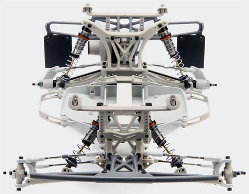 •Gehärtete Querlenkerhalter vorne präzisieren die Lenkung, während die Querlenker hinten den Truck in den Kurven stabilisieren.