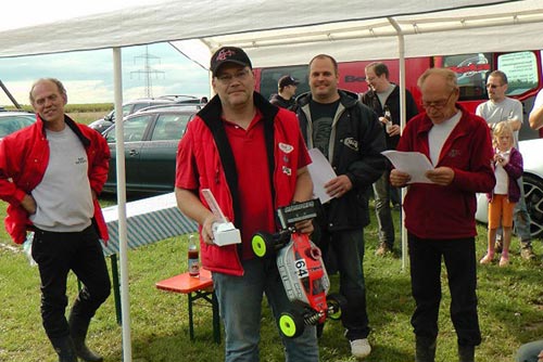 Dann aber kam es ganz dicke, das Wetter spielte wieder verrückt und der Himmel öffnete seine Schleusen. Die letzten zehn Minuten des Finallaufs ähnelten eher einem Boots- als einem Buggy Rennen. Markos Inferno MP9 lief wie ein Uhrwerk und so konnte er Markus Vierling, der mit technischen Problemen zu kämpfen hatte, passieren und dem Sieg entgegenfahren. Das Expert Finale konnte aufgrund der Wetterlage nicht mehr ausgetragen werden und wurde nach den Halbfinalläufen gewertet.