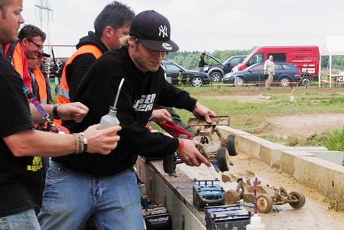 | | Der letzte Bayern Cup in der Klasse Buggy OR8 fand vom 7. bis 8. August in Senden auf dem MIT-Ring bei Ulm statt. Die Strecke ist den Fahrern sehr gut bekannt, fand doch im letzten Jahr genau hier ein Lauf zur Deutschen Meisterschaft statt. Insgesamt waren 65 Fahrer am Start, wobei sich 27 in der Expert Klasse und 38 in der Hobby-Klasse wieder fanden. Der Wettergott hatte an diesem Wochenende einige Überraschungen für die Teilnehmer parat. Immer wieder brachten Schauer wechselnde Bedingungen, aber die fleißigen Helfer vom MTC Senden sorgten für prima Streckenverhältnisse.