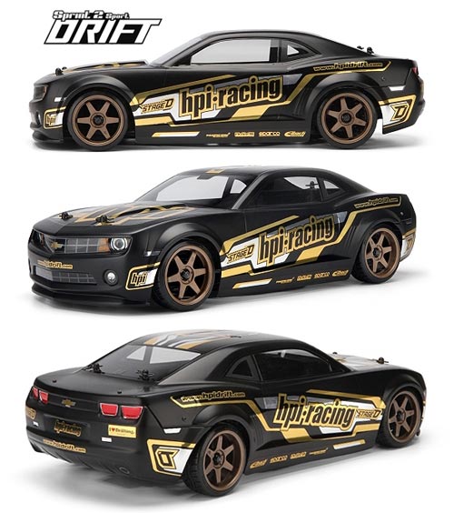 Der Sprint 2 Drift Sport ist ab sofort mit der einzigartigen 2010 Chevrolet Camaro American Musclecar Karosserie ausgestattet, die ihm einen unglaublichen Look verleiht! Das vormontierte RTR Kit umfasst einen elektrischen Fahrtenregler mit Rückwärtsgang, kompletten Kugellagersatz, Zwei-Riemen Allradantrieb, 15 Turn Motor und ein HPI TF-1 Fernsteuersystem.
