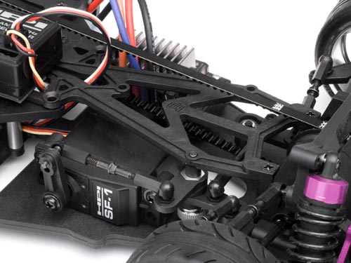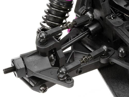 - Vordere und hintere Dämpferbrücken mit verschiedenen Dämpfer- und Spurstangenbefestigungsmöglichkeiten für das richtige Feintuning.