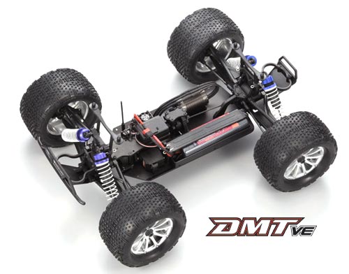 | | Der DMT VE löst bei Piloten und Zuschauern gleichermaßen euphorische Begeisterung aus. Das sensorlose Team Orion Vortex 10 Brushless System ist ein regelrechter Treibsatz und verleiht dem Boliden Antriebsleistungen in noch nie zuvor gesehener Form. Dabei lässt sich die Leistung sehr feinfühlig und direkt dosieren. Im Fahrwerk und im Antriebsstrang des DMT VE stecken die Erfahrung aus dem Monstertruck MFR und dem OffRoad Buggy DBX. Dabei herausgekommen ist ein reinrassiger Monstertruck.