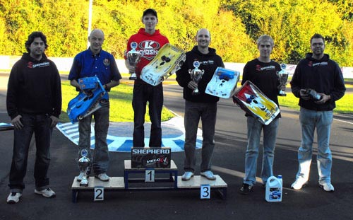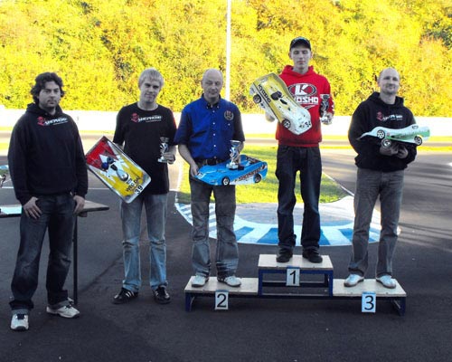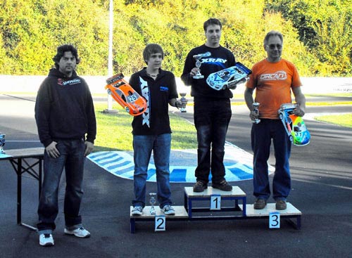 Nach einer kurzen Auswertungspause ging es mit den unteren Finalläufe weiter. In der Klasse 1:10 Scale stiegen aus dem Viertelfinale B Uwe Velten, Tobias Hühn und Adolf Knobloch in das Halbfinale auf, im Viertelfinale A belegten Timo Abendschön, Peter Schumann und Bernd Beuershausen die Aufstiegsplätze. Nach der Mittagspause standen die Halbfinale auf dem Programm. Tobias Hühn sicherte sich den Sieg im Halbfinale B und stieg somit ein weiteres mal auf, auf dem zweiten Platz kam Raimond Weigel ins Ziel. Für Roland Börmel auf Platz 3 und Peter Sobota auf Platz 4 war zunächst banges Warten angesagt, da ja die beiden Erstplatzierten sowie die beiden weiteren Zeitschnellsten aus beiden Halbfinale zusammen aufsteigen. Das zweite Halbfinale war allerdings deutlich schneller und so konnten aus diesem die folgenden vier Fahrer aufsteigen: Sebastian Wagner, Hartmut Rose, Christian Dussinger und Jürgen Schuch.