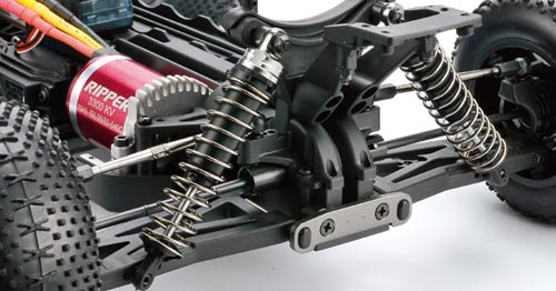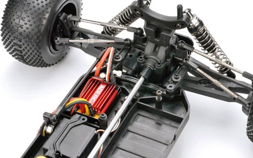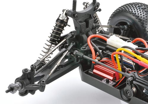 • Das Spezial-Wannenchassis mit versenkten Schrauben kreiert Dank seiner optimalen Gewichtsverteilung ein unheimlich ausgewogenes Handling des Truggys – egal ob im wilden Gelände oder auf der Rennpiste.