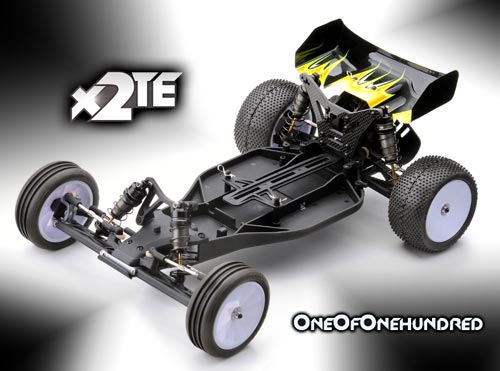 | | X2 Team Edition Kit One of Onehundred. Diese auf 100 Stück weltweit limitierte Auflage des X2 Buggys widmen wir all den Erfolgen, die dieses Fahrzeug eingefahren hat. Der Bausatz des X2 Team Edition ist voll gepackt mit nützlichen Hopups wie zum Beispiel die in der 1:10 Off-Road Klasse wohl einzigartigen Big Bore Stossdämpfer, des weiteren Alu C-hubs, Alu Achsschenkel, CFK Dämpferbrücke hinten und noch vieles mehr.