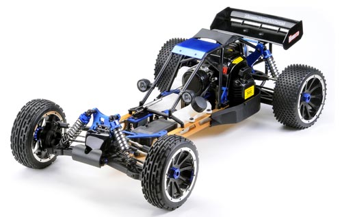 | | rc-car-news.de ist froh Ihnen ein neues Modell im Maßstab 1/5 aus der Fahrzeugschmiede Krick/Himoto präsentieren zu können. Mit dem XB5 erweitert Krick sein Sortiment im bereich der Großmodelle um einen 4WD Buggy. Mit diesen Buggy rundet Krick/Himoto sein Sortiment nach oben hin ab. Einfaches Handling und solide Technik stand während der Entwicklung immer im Vordergrund. Seiner Qualitativ hochwertigen Ausstattung, gepaart mit den enormen Ausmaßen macht den XB5 zu einem Modell das seines Gleichen sucht. Angetrieben von einem leicht zu startenden 2-Takt Benzinmotor wird die Kraft über Kardanwellen sicher an alle 4 Räder übertragen. Die eingebaute Fernsteuerung in Verbindung mit den starken Servos ermöglicht sowohl Einsteigern als auch Profis eine sichere Fahrzeugbeherrschung.