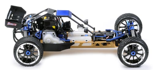 Lieferumfang: Montiertes Chassis 4WD mit 26 ccm Benzinmotor mit eingebautem Empfänger 2.4 GHz mit Failsafe-Funktion, Lenkservo E2010 und Gas/Bremsservo 9 kg