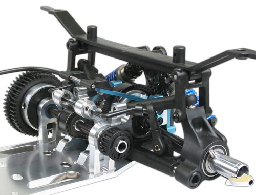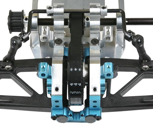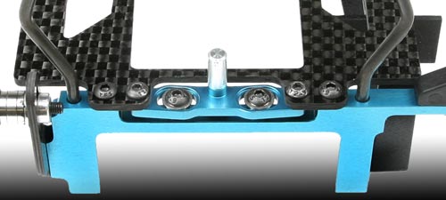Die komplett neu gestaltete kugelgelagerte Aufnahme für den Stabi verbessert die Performance deutlich und ermöglicht eine absolut spielfreie Montage. Der Stabi wird direkt auf den hinteren Lagerböcken montiert und belastet somit die Lager der Getriebewelle nicht zusätzlich. Die Position ist wesentlich tiefer und trägt somit zu einem niedrigen Schwerpunkt bei. Kombiniert mit den 3 verschiedenen verfügbaren Drähten ist der Stabi definitiv eines der Highlights des V8 "Eleven". Des Weiteren kommt an der Hinterachse ein neuer einteiliger oberer Querlenkerhalter zum Einsatz, der die Wartung vereinfacht und für zusätzliche Stabilität sorgt.