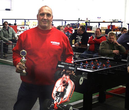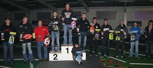 Das 30-minütige Finale sollte zur One-Man-Show von Timo Engelstätter werden. Auf den Punkt hellwach und voll konzentriert ging er von Startplatz 2 ins Rennen um sich direkt nach dem Start an die Spitze des Feldes zu setzen. Ihm folgten die Mitfavoriten Andreas Bartels, Philipp Guschl und Carsten Keller mit nur wenigen Sekunden Abstand. Eine souveräne Fahrweise und technische Probleme, sowie Fehler der Anderen ließen Ihn seine Führung stetig ausbauen. Absolut kontrolliert ließ Timo seinen von Team Orion angetriebenen Inferno MP9 um den Kurs fliegen und fuhr einen zu keinem Zeitpunkt gefährdeten Sieg mit einer Runde Vorsprung vor Carsten Keller und Abdullah Kilic ein. Als bester Teilnehmer 40+ wurde Heino Müller gekürt, der als Neuzugang im Team KYOSHO sein erstes Rennen mit dem Inferno MP9 bestritt.