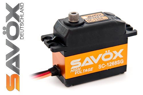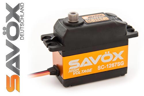 | | Mit den neuen hochvoltfähigen Servos SC-1267SG und SC-1268SG bietet SAVÖX nun speziell für den R/C-Car Bereich entwickelte Servos an. Mit diesen neuen hochvoltfähigen Servos ermöglicht SAVÖX nicht nur den direkten Anschluss von LiPo-Akkus bis 7,4 V, sondern stellt zeitgleich das neu entwickelte Getriebe aus gehärtetem Stahl vor, das speziell für den anspruchsvollen Einsatz in R/C-Cars, sowohl auf als auch abseits der asphaltierten Strecke, konzipiert wurde. Die bärenstarken und blitzschnellen Servos können problemlos in Offroad-Cars bis zum Maßstab 1:8 zuverlässig eingesetzt werden.