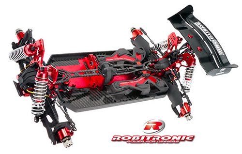 So etwas hat es noch nie gegeben: Ein Chassis in V-Form aus Kohlefaser- Alu Verbund mit Alu Inlays für perfekte Wärmeableitung. Durch das Design wird es möglich den Mittel Antriebsstrang komplett gerade durch das Fahrzeug zu führen. Dies schont den Antrieb und die Brushless Power geht schlüssig bis zum Rad. Neue Wege auch bei den Diffausgängen: Neuartige Lagerführung für extremen Leichtlauf und „0“ Reibungswärme. Mit wenigen Schrauben ist man am Antriebsstrang, - das macht Wartungs und Setup Arbeiten zum Kinderspiel. Bewegungsfreiheit satt: lange Schwingen sorgen in Verbindung mit den Big Bore Dämpfern für optimalen Bodenkontakt. Stabilisatoren an der Vorder- und Hinterachse ermöglichen eine gute Abstimmung des Fahrzeugs zur Strecke.