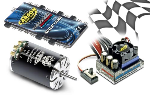 | | Carson zeigte auf der Internationalen Spielwarenmesse in Nürnberg seine neue Generation der Carson Brushless- Antriebe, die Dragster Sport black Sets. Sie verfügen über noch mehr Power und eine bessere Effizienz, und sind wahlweise mit 16, 12, 10 oder 6Turn Motoren zu haben.