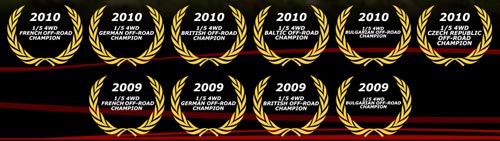 Auch im Basis Design geht man neue Wege, hier ist z.B. die Gewichtsverteilung von 50% an der Vorder- und 50% auf der Hinterachse zu nennen oder der erste 4WD Antrieb im 1/5er Maßstab über Antriebswellen. Das dieses Konzept mit Innovationen und neuen Ideen stimmig ist beweisen die 6 Meistertitel in 6 Ländern im vergangenen Jahr und lässt auf eine Wiederholung für 2011 hoffen.
