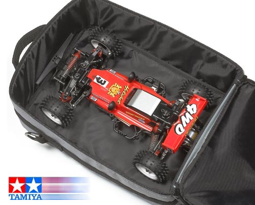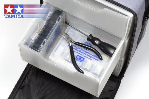 | | Im professionellen Motorsport ist die Logistik eine echte Herausforderung. Nicht anders ist dies bei R/C Piloten, die häufig auf Tour sind. Für den sicheren Transport von Fahrzeugen und Ausrüstung bietet TAMIYA jetzt die praktische und stabile A4 Multifunktionstasche. Sie ist ca. 330 mm hoch, 250 mm breit, 150 mm tief und besitzt drei geräumige Schubladen aus stabilem Kunststoff. Dort finden Akkus, Ladegeräte, Tuningzubehör und vieles mehr gut sortiert Platz. Entfernt man die Einsätze ganz oder teilweise, so bringt man auch ein größeres Modell (1:10) unter.