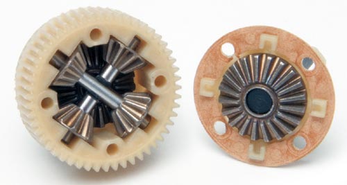Drehmomentstarkes 2,6:1 Getriebe mit nochmals optimiertem, ultrastabilem, abgedichtetem „4-Spider“ Stahl-Zahnrad-Differential, welches – „100% Racing like“ – mittels unterschiedlichen Silikon-Ölen in seiner Sperr-Traktions-Wirkung immer perfekt auf die jeweilige Strecke angepasst werden kann…