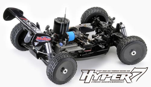 Hyper 7TQB, Sender (HT-2.4EF), Empfänger (HR-2.4F), 2x Servo (H-101), Hyper .21 – 3,49 cm³ (3 Kanal) , Tuning Resorohr & Krümmer, Tankflasche, Bedienungsanleitung.