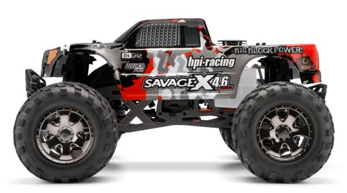 | | Der legendäre HPI Savage X 4.6 ist bekannt als der härteste Monstertruck auf dem Markt und ab sofort ist er mit noch mehr neuen Merkmalen versehen! Der Monstertruck, der neue Maßstäbe in punkto Stabilität, Big Block Power, innovativem Design und unangefochtene Performance gesetzt hat, macht nun seinem Namen wieder alle Ehre. Besser als je zuvor ausgestattet, besseres Fahrverhalten, besseres Funkfernsteuer-System und eine unglaublich coole Karosserie. Der neue Savage X 4.6 kann in jedem Bereich punkten! Dank dem neuen HPI 2,4GHz Funkfernsteuer System mit integriertem Failsafe, lässt sich der Savage X 4.6 zuverlässig und einfach kontrollieren. Quarzwechsel gehört nun der Vergangenheit an.