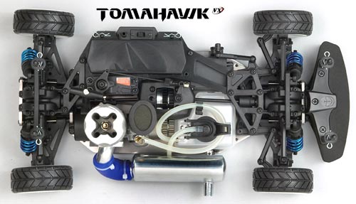 Das Tomahawk VX 4WD-Chassis ist eine ausgereifte Evolutionsstufe in der Klasse der 1:10 Tourenwagen mit Nitro Motor. Das Modell wurde von Grund auf für bestmögliche Performance und einfaches Handling designed. Das durchdachte Konzept ermöglicht professionelles R/C Racing ohne sofort notwendige, kostenintensive Tuning-Maßnahmen. Der kraftvolle und zigtausendfach bewährte PRO-18BX Nitro Motor mit satten 3,0ccm Hubraum inklusive Seilzugstarter und die präzise Zweigangautomatik beschleunigt den kardangetriebenen Tomahawk VX auf atemberaubende Endgeschwindigkeiten. Die Allrad-Antriebstechnik in Verbindung mit der einstellbaren Scheibenbremse ermöglichen jedem Piloten in allen Geschwindigkeitsbereichen optimale Kontrolle und gewagte Race- Manöver. Ob auf dem Parkplatz oder der Rennstrecke Ihres R/C Vereins, mit dem neuen Tomahawk VX haben Sie immer den perfekten R/C Tourenwagen an Ihrer Seite.
