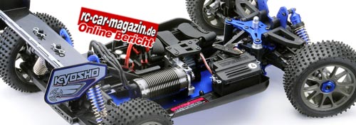 Sehen und Lesen Sie den ausführlichen Bericht mit vielen Details-Fotos des 1:8 Elektro Off Road Buggy Kyosho Inferno VE auf rc-car-magazin.de.