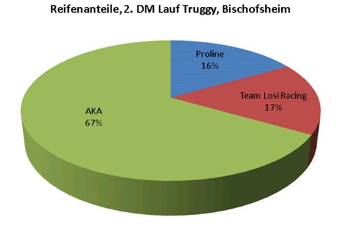 | | Am vergangenen Wochenende fand der zweite und Letzte Lauf zur Truggy-DM in Bischofsheim statt, an dem 58 Starter teilgenommen hatten. Während die Bischofsheimer Strecke gewohnt gut vorbereitet war, mussten die Teilnehmer das ganze Wochenende auf gutes Wetter hoffen. Der Trainingstag am Freitag verlief dann trocken, während am Samstag leichte Schauer die Stimmung etwas trübten. Nichts desto trotz wurden wie geplant am Samstag zwei Trainingsläufe und vier Vorläufe ausgefahren. Welch krasser Gegensatz die beiden DM Strecken darstellen, zeigte schnell die Ergebnisliste, während in Welden einige Fahrer ganz weit vorne lagen, hatten sie in Bischofsheim lange zu kämpfen um eine ähnliche Performance zu erlangen. Die meist gestellte Frage des Wochenendes war wohl, was fahren wir jetzt für Reifen? Letztlich pendelte es sich zwischen Proline Caliber und AKA I-Beam und Grid Iron ein. Am Samstagabend wurde dann die Strecke vorsorglich mit Folie abgedeckt, um diese vor Regen in der Nacht zu schützen und befahrbar zu halten. Diese Maßnahme sollte Gold wert sein, denn pünktlich als die ersten Fahrer am Sonntagmorgen auf der Matte standen, öffnete der Himmel seine Pforten und lies es regnen.