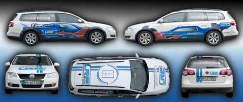 An den Radstand der Passat Kombis angepasst entfalten die Motive ihre besondere Wirkung. Gepaart mit weiteren grafischen Elementen sind die Autos ein absoluter Blickfang. Die Fahrzeuge sind jedoch nicht nur R/C Car spezifisch beispielsweise mit Rallyestreifen und stylischer Beschriftung aufgepimt.