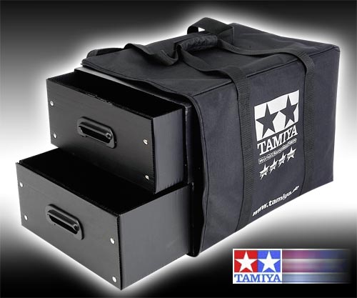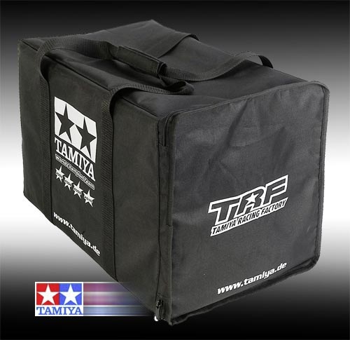 | | Tamiya präsentiert eine große Tasche für bis zu zwei R/C Modelle im Maßstab 1:10. Echte R/C Profis reisen meist mit großem Gepäck, denn nicht immer geht es nur mit einem Modell zum nächsten Event – und Zubehör und Ersatzteile wollen schließlich auch transportiert werden. Stilvoller und vor allem einfacher wird die Schlepperei mit dem neuen Big-Pack von TAMIYA, der ab sofort im Handel ist: Dabei handelt es sich quasi um eine komplette Boxengasse to-go zum Preis von 49,99 €.
