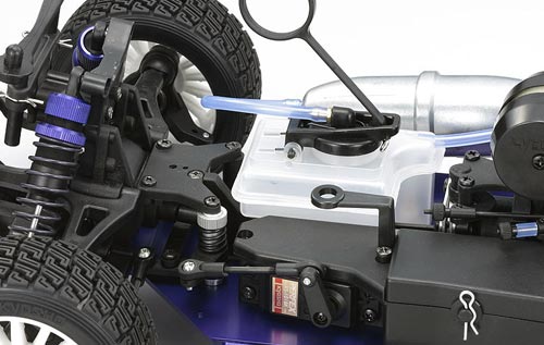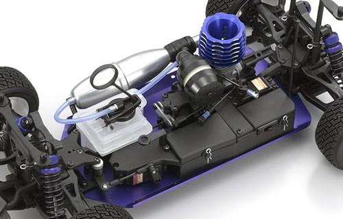 Als weiteres Feature verfügt der DRX über großvolumige BigSize Öldruckstoßdämpfer, die bereits im Inferno GT erfolgreich zum Einsatz kommen. Besonders auf löchrigen Strecken und bei weiten Sprüngen bieten diese Dämpfer erhebliche Vorteile. Die Federvorspannung ist über Rändelmuttern mit Feingewinde stufenlos einstellbar. Ebenfalls neu entwickelt ist der Xtra-Volume Tank mit einem Fassungsvermögen von 105 ml. Er verfügt über ein spezielles Design, das den Motor in jeder Fahrsituation optimal mit Treibstoff versorgt. Durch das große Volumen sind Fahrzeiten von mehr als 10 Minuten mit einer Tankfüllung möglich.