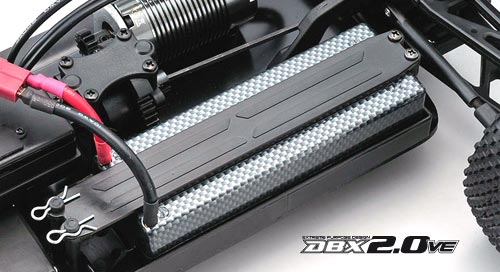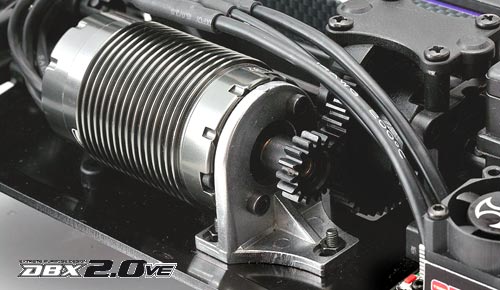 Als weiteres Feature verfügt der DBX VE 2.0 über großvolumige BigSize Öldruckstoßdämpfer, die bereits im Inferno GT erfolgreich zum Einsatz kommen. Die Federvorspannung ist über Rändelmuttern mit Feingewinde stufenlos einstellbar. Der Allrad-Antriebsstrang ist komplett kugelgelagert und verfügt über drei Differentialgetriebe, die für eine gleichmäßige Kraftverteilung auf die vier Räder sorgen. Die 1:8-Spike-Reifen vom Inferno NEO an Vorder- und Hinterachse verfügen über die gleichen Abmessungen. Sie bieten perfekten Gripp auf jedem Terrain. Die Radmitnehmer passen für alle gängigen 1:8-Offroad-Felgen.