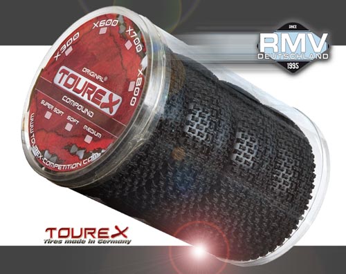 | | RMV Deutschland präsentiert den neuen X300 Syntrack Reifen von Tourex für 1:8 Buggys. Bei den hier gezeigten Reifen handelt es sich um loses High-Grip Reifengummi inklusive Reifeneinlage. Der neue Tourex X300 wurde entwickelt für extrem griffigen Untergrund und besticht insbesondere durch hohe Traktion sowie ein ruhiges präzises Fahrverhalten und leichtes Handling in allen Geschwindigkeitsbereichen. Im Lieferumfang sind 4 Reifen vom neuen X300 und der Aufbewahrungsdose enthalten.