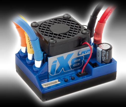 | | Bereits sein Vorgänger, der SPX8 Competition BL Regler, beeindruckte die Szene. Aber der Neue setzt locker noch einiges drauf. Geht er doch als reinrassiger 1/8 Brushless Regler an den Start. Speziell für die höheren Spannungen im 1/8 Bereich komplett neu entwickelt, präsentiert sich der iX8 als idealer Basher- oder Wettbewerbsregler. Er vereint das Beste vom Besten heutiger Brushless Racing Technologie und ist robust genug um im harten Renn- oder Bashalltag zu bestehen. Da ist es fast schon selbstverständlich, dass der Kondensator innenliegend ist, Powerkontakte und Lüfter steckbar sind und er für den Betrieb mit 2S-6S LiPo-Akkus geeignet ist.
