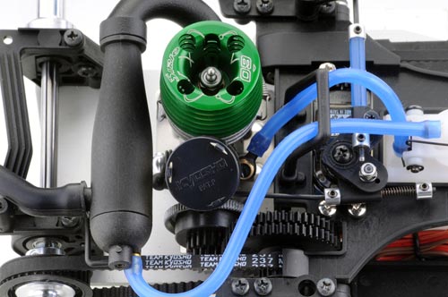 Das Herzstück des SPADA ist der fast schon legendäre Sirio 09 Verbrennungsmotor, der sein erfolgreiches Debüt im Mini Inferno Zero Nine gefeiert hat. In Verbindung mit dem Resonanzrohr, verfügt er über ein enormes Grunddrehmoment und eine lineare Leistungsentfaltung. Die Kraftübertragung auf den Antriebsstrang erfolgt über eine Zweibackenkupplung auf das 2-Gang-Getriebe. Das Tanksystem wurde ebenfalls neu konzipiert und exakt auf das Chassis des SPADA angepasst. Der Tank verfügt über einen Inhalt von 38 ml, womit Fahrzeiten von bis zu 7 Minuten erreicht werden.
