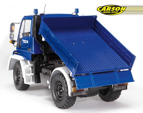 | | Der THW Unimog U300 von Carson Model Sport ist ein voll funktionsfähiges Modell, das mit seinem originalgetreuen Aussehen überzeugt. Alle Funktionen des CARSON Unimogs lassen sich per 2,4 GHz 6-Kanalpultsender fernsteuern. Seine griffigen Gummireifen sorgen für Vortrieb auf allen Oberflächen. Die Seilwinde verfügt über einen kräftigen Elektromotor. Fahrfunktionen und Lenkung werden stufenlos und proportional gesteuert, Hupe und Beleuchtung über je einen Schaltkanal und die Ladefläche wird ebenfalls über einen proportionalen Kanal bedient. Selbst das Blaulicht am Dach arbeitet vorbildgetreu und der Planenaufbau ist natürlich abnehmbar. Der originale Sound lässt sich über einen Schalter am Fahrzeug zu- und abschalten. Sämtliche für den Betrieb notwendige Batterien und ein Fahrakku samt Lader sowie ein Sendertragegurt sind im Lieferumfang des CARSON Mercedes Benz THW Unimogs U300 enthalten.