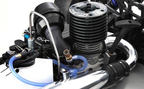 Das GT2-Chassis verfügt über eine hochbelastbare Doppelscheibenbremse und ist auf den typischen Glattbahneinsatz abgestimmt. Der permanente Allradantrieb garantiert die effiziente Umsetzung der Motorleistung in Vortrieb. Der Tank hat ein Fassungsvermögen von 150 ml und ermöglicht dadurch Fahrzeiten von ca. 11 Minuten. Die Spurstangen verfügen über R/L-Gewinde und stammen aus dem bewährten Inferno US Sports.