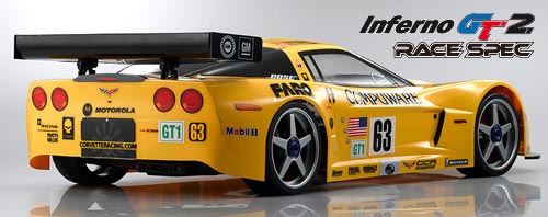 | | Mit der Inferno GT2 Race Spec 07 Corvette im Maßst. 1:8 führt Kyosho ein neues Qualitätsniveau in der Klasse der Ready Sets ein. Neben einem zeitgemäßen 2.4GHz-Fernsteuersystem, verfügt der Race Spec über einen hochwertigen Rennmotor und weitere Features, die sonst nur bei hochpreisigen Wettbewerbsmodellen zu finden sind. Unter der edlen Karosserie verbirgt sich die hochkarätige Technik aus Kyosho's Weltmeister-Fahrzeug Inferno. Der KE-25 Xtreme Power Motor besitzt eine SG-Kurbelwelle und verleiht dem GT2 ein atemberaubendes Leistungspotential. Die Schwungscheibe wurde gegenüber dem Vorgänger um 10 mm auf 34 mm Durchmesser reduziert, um die bewegte Masse zu reduzieren. Dadurch wird das Ansprechverhalten des Triebwerks spürbar agiler. Zudem verfügt der KE-25 über einen neuen, ergonomisch geformten Seilzugstartergriff, um einen sicheren Halt in der Hand zu gewährleisten. Wilde Drifts, extreme Beschleunigung und hoher Top-Speed garantieren atemberaubende Fahrerlebnisse auf jeder Strecke!