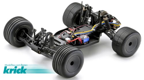 | | Mit dem brandneuem Crazy ST Truggy Mega E 2WD EP von Himoto präsentiert Krick einen Heckangetriebenen Truggy im Maßstab 1:10 mit Brushed oder Brushless Antrieb. Dieser zeichnet sich besonders durch sein geringes Gewicht und die konsequent flach konstruierte Bauweise mit tiefem Schwerpunkt aus. Die eng schnittige Karosserie bildet mit dem glatt geformten Chassis eine optimale Einheit. In der Brushless Version sind enorme Geschwindigkeiten bei vergleichsweise günstigem Preis erzielbar.
