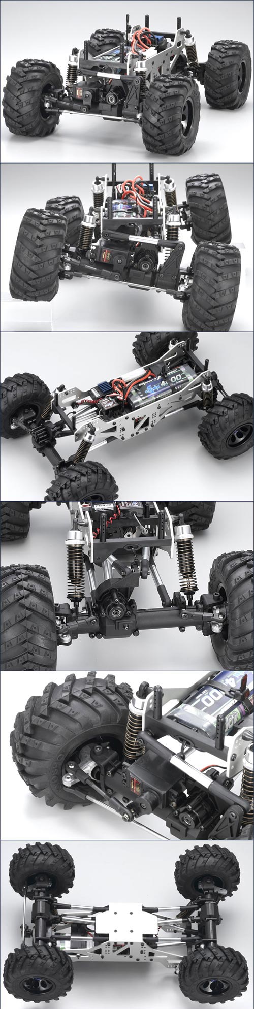 | | Mit dem Rock Force begibt sich KYOSHO in die neue Trendwelt der Crawler. Crawler haben die Eigenschaft, dass sie extrem geländegängig sind und sich an nahezu jedes Terrain im wahrsten Sinne des Wortes anpassen können. Dazu verfügen die Crawler über Pendelachsen, die eine maximale Verschränkung zulassen.