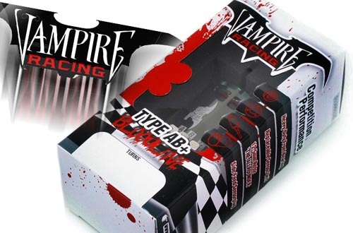 | | Vampire Racing präsentiert seine neue Brushless Motorenserie „Type AB+ Bloodline“. Die sensorgesteuerten Motoren sind mit 9,5T, 10,5T, 13,5T, 17,5T und 21,5 Turns lieferbar, und sind Dank farblicher Markierung leicht zu unterscheiden.