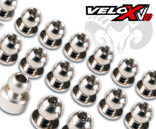 | | Ab sofort gibt es für den Velox V10 und den Velox V8 hochwertige Aluminium Kugelkopf-Sets. Die CNC gefertigten Kugelköpfe sind glanzvernickelt um eine hohe Lebendauer und einen geringen Verschleiß zu gewährleisten.