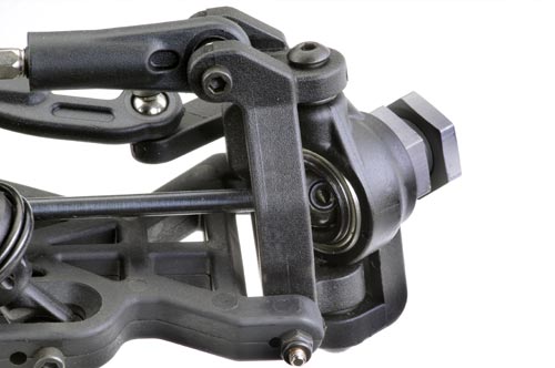 Große Bodenwellen schlucken die serienmäßigen Big Bore Öldruckdämpfer sowie die ausgewogene Fahrwerksgeometrie mit Leichtigkeit. Dabei stellen die verstärkten Kunststoff-Dämpfergehäuse eine Neuentwicklung in der Dämpfer- Technology dar. Erstmalig ist das Ausdehnverhalten der Kolbenplatte und des Gehäuses genau gleich und die Reibung durch die gleichen Materialien geringer als in Aludämpfern.